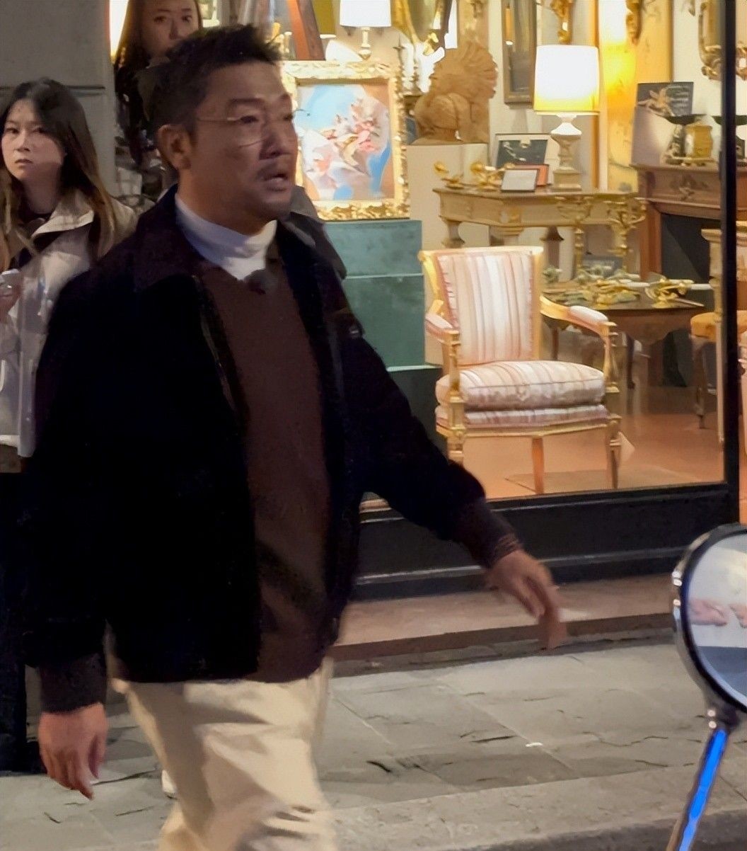 侧面一看,不仅显得人沧桑,而且身材也显得很壮,看见他皱着眉头逛街,把佛罗伦萨逛成家门口菜市场,脸上没有一点旅游的欣喜,全是心累。